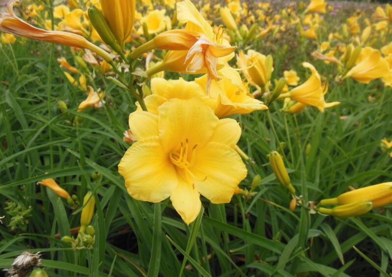 金娃娃萱草是屬于一種園藝栽培的品種,作為綠化美觀使用非常的適合,主要就是每年的花期比較長,可以分為盛花期以及續花期,每一朵花開花都可達到7天左右,生長時候的高度在30厘米左右,下面是小編為大家找的金娃娃萱草圖片草大全