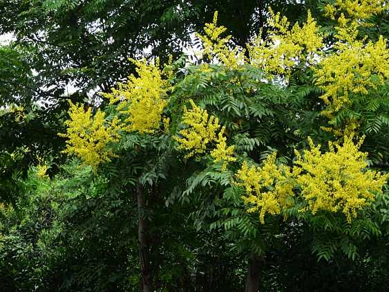 黃山欒樹也叫全緣欒樹、復(fù)羽葉欒樹,樹高可長至20多米,黃山欒樹適應(yīng)能力強(qiáng)、生長速度快、樹型高大優(yōu)美,夏末秋初開花時分黃色花朵灑滿樹冠,深秋紅色果實猶如一串串燈籠,與黃色秋葉相間,觀賞性極高,非常適合用來制作庭蔭樹、行道樹,也可以用來作工礦廠區(qū)的綠化美化樹種。