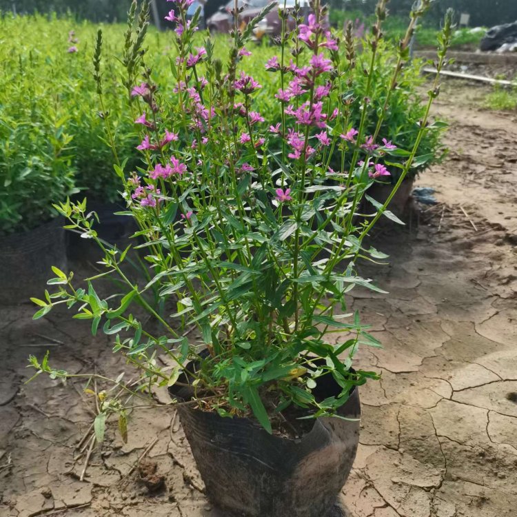 千屈菜又叫水枝柳、水柳、對葉蓮等,多年水生宿根草本植物,植株高約1米,直立生長,主桿上有許多分枝,葉子對生,披針形。葉子長4~6cm,寬1cm左右??偁罨ㄐ蹰L在最上面,長約30cm,花朵簇生。喜歡溫暖濕潤陽光充足的環境,在我國南方和北方地區都有野生的,生長在沼澤、湖畔、池塘等淺水地區。它耐寒性強,在山東、河南、北京等地均可自然越冬,霜降以后地面部分枯死,地下部分進入泥土休眠,在淺水的河邊和低洼潮濕的地方生長態勢最好,對土壤的要求不嚴。千屈菜的生命力極強,管理也可粗放,栽培的環境只要保證光照充足、通風良好即可,在生長期要經常打頂促使其矮化分蘗,長出豐滿茂密的株型。